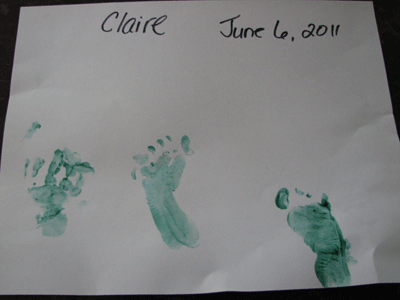 The left foot and right foot are pretty obvious. That blob over on the far left was my attempt to get a handprint.