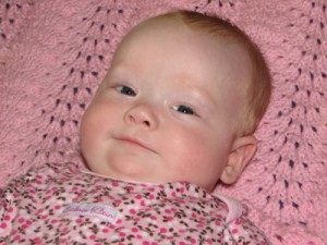 Last night was a little rough. Claire is usually pretty easy to put to bed. Other than her night-light, her room is in darkness, I have a tabletop fan running (blowing away from her) to create white noise, and on really hot nights I have her ceiling fan going. We sit in the rocking chair and while I give her the bottle, I usually sing “You are my Sunshine” a few times. Some nights she finishes the whole bottle, other nights she doesn’t; it depends on how much she ate during the hours leading up to bedtime. I put her up on my shoulder to burp her (usually unsuccessful as she is almost always half-asleep by this point), still rocking, and then lay her down on the nursing pillow in my lap. Rock her a little longer and then ever so slowly, get up and lay her down in her crib. I stand there for a minute or two, a hand resting lightly on her belly to make sure that she isn’t going to suddenly wake up the minute I leave the room, and then I tiptoe out and pull her door.