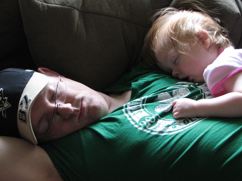 On Sunday, she was a little cranky when she first got up, but it seemed to be only because she was famished. Neal was on duty on Saturday so after breakfast and doing a few things around the house, she and I went and picked him up. She went down for her nap in the late morning, and when I got her up a couple of hours later, I immediately knew she had a fever. A quick check with the thermometer told me I was right.