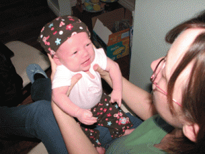 This is, actually, the second day in a row where she has fought sleep in the morning, although yesterday we did manage to stay in bed until 8 a.m. I was baffled yesterday when she managed to stay awake from that hour until noon when she finally conked out for a few hours – long enough for me to stuff a quick lunch down my throat and lie down for a nap myself. In a very naive sort of way, I keep hoping this is her sorting out her days and nights and soon I will have a baby who sleeps for 5 or 6 hours at night when Neal and I are sleeping.