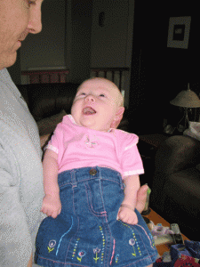 Thankfully, it doesn’t distress her all the time, and we’ve been blessed with seeing more smiles and hearing more cooing sounds lately. I’ve even heard what sounds like little laughs, although I’m not sure what it is that she finds so funny. Doesn’t matter really – that sound warms my heart and I can’t help but laugh myself.