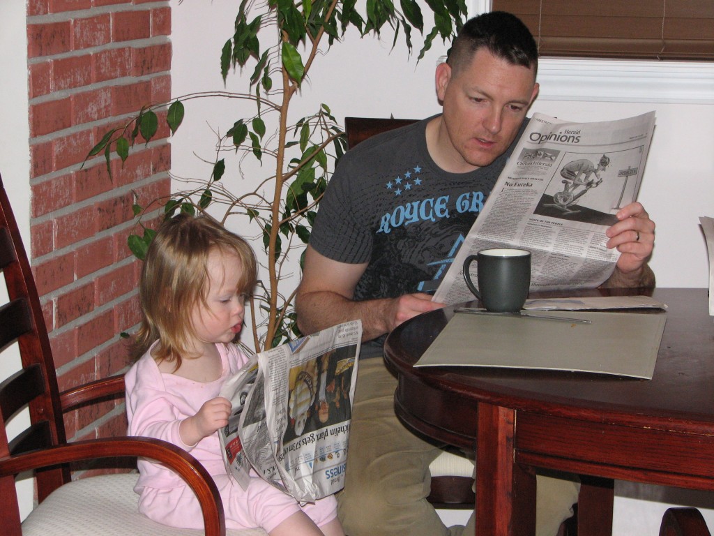 And yet, there is very little I can do. I might carry my kid outside with no coat, shoes or socks, but I’m not about to put her in her car seat with absolutely nothing on, not even a diaper. Tonight, I just rode out the Claire Storm. When she gets into a full-blown tantrum, it’s all I can do. Just leave the room she’s in, pretend to ignore her and try to keep myself calm (though it’s pretty damn obvious where she gets her temper!).